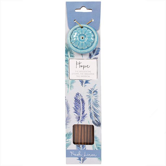 This Hope Incense Stick set is part of the Scentimental Range. Pack contains 40 incense sticks and a ceramic incense holder. The fragrance of this set is ‘Fresh Linen’